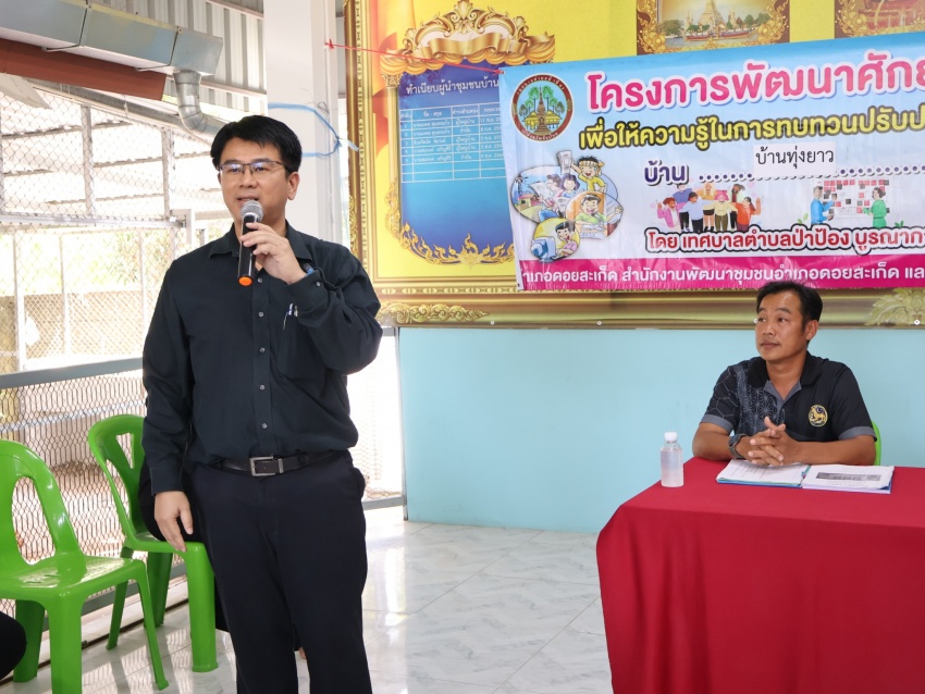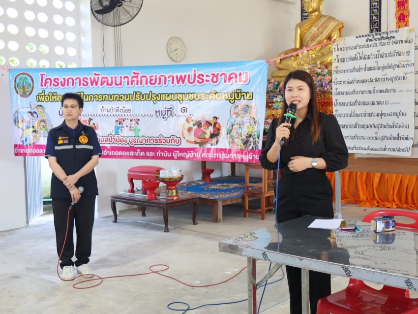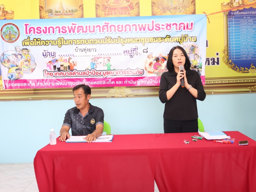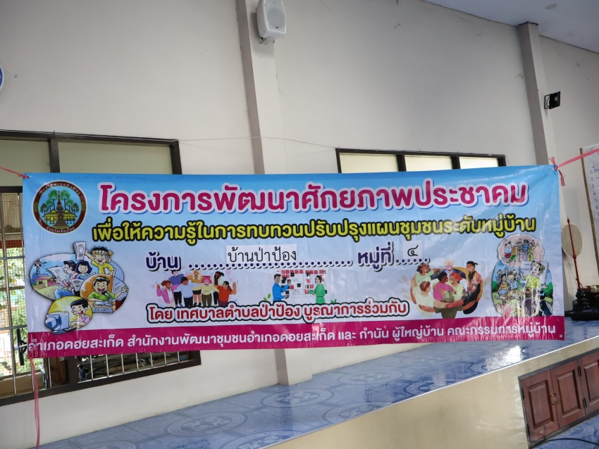 พร้อมทั้งดำเนินการประชุมประชาคมหมู่บ้านเพื่อจัดทำแผนพัฒนาท้องถิ่น โดยมี **นางกัลยา มีรักษ์ อดีตปลัดเทศบาลตำบลป่าป้อง** ให้เกียรติมาเป็นวิทยากรพิเศษ ให้คำแนะนำและแนวทางในการจัดทำแผนพัฒนาท้องถิ่น เพื่อให้เกิดประโยชน์สูงสุดแก่ประชาชนในพื้นที่