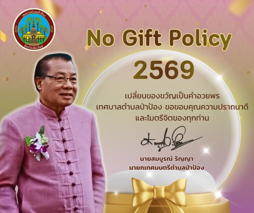 เทศบาลตำบลป่าป้อง มีนโยบาย ?ไม่? รับของขวัญและของกำนัลทุกชนิดจากการปฏิบัติหน้าที่ (No Gift Policy) ประจำปีงบประมาณ พ.ศ. 2569 เพื่อเป็นการเสริมสร้างค่านิยมให้เกิดการประหยัด สร้างทัศนคติที่ถูกต้อง และป้องกันการเกิดผลประโยชน์ทับซ้อน