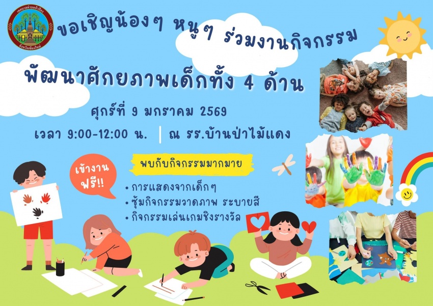 เทศบาลตำบลป่าป้อง ขอเชิญชวนน้องๆ และผู้ปกครองเข้าร่วม "โครงการพัฒนาศักยภาพเด็กทั้ง 4 ด้าน" เสริมสร้างทักษะรอบด้านเพื่ออนาคตที่สดใส