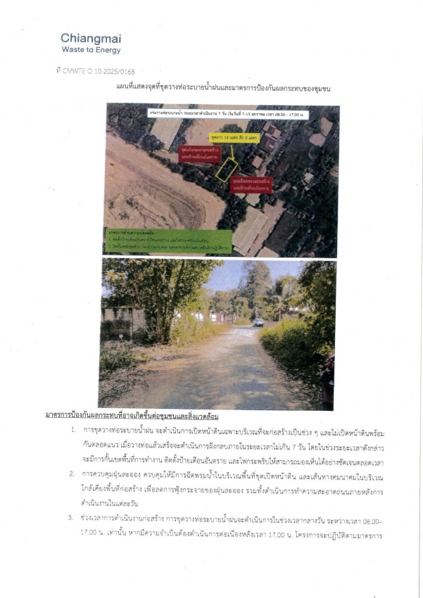 เทศบาลตำบลป่าป้อง ขอประชาสัมพันธ์แจ้งแผนงานขุดวางท่อระบายน้ำฝน บริเวณถนนชุมชน (โครงการโรงไฟฟ้าขยะ Chiangmai Waste to Energy) เพื่อพัฒนาและบริหารจัดการระบบระบายน้ำในพื้นที่ให้ดียิ่งขึ้น