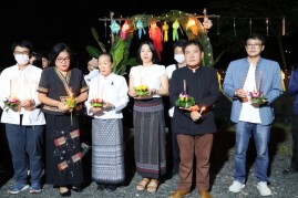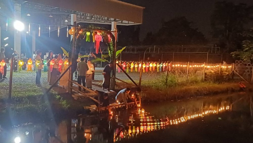 ร่วมลอยกระทง ณ สระน้ำบริเวณลานกิจกรรม เพื่อขอขมาพระแม่คงคาและอธิษฐานสิ่งดีงาม
