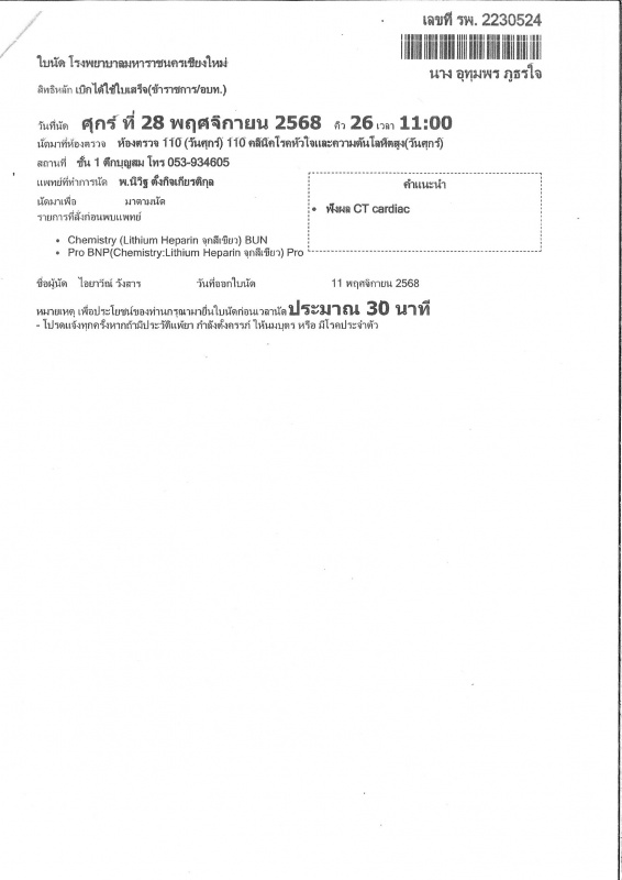 ขออนุเคราะห์รถพยาบาลรับ-ส่งผู้ป่วยไปยังรพ.มหาราช นางอุทุมพร ภูธรใจ วันที่28 พ.ย68 เวลา10.00น.