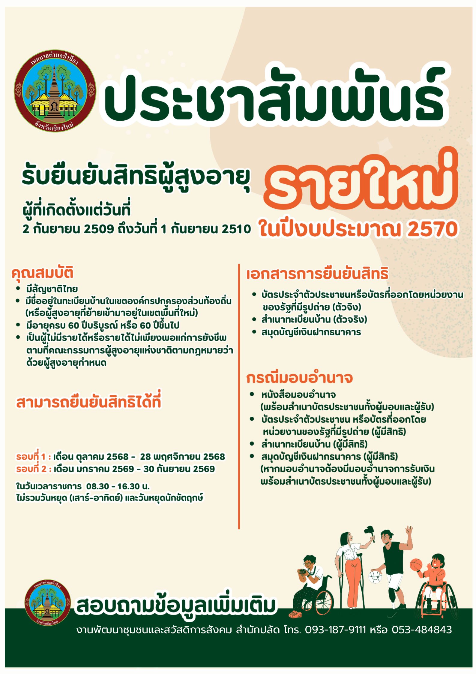 การรับยืนยันสิทธิรับเงินเบี้ยยังชีพผู้สูงอายุของเทศบาลตำบลป่าป้อง ประจำปีงบประมาณ พ.ศ. 2570