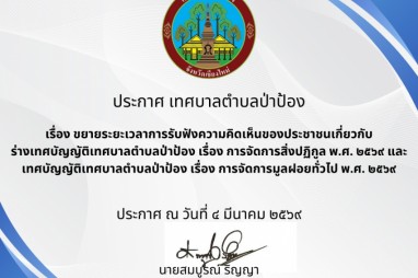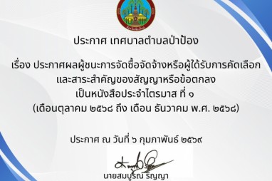 ประกาศเทศบาลตำบลป่าป้อง เรื่องการจำหน่ายพัสดุ ครุภัณฑ์ ที่ชำรุดออกจากทะเบียน ประจำปี ๒๕๖๘