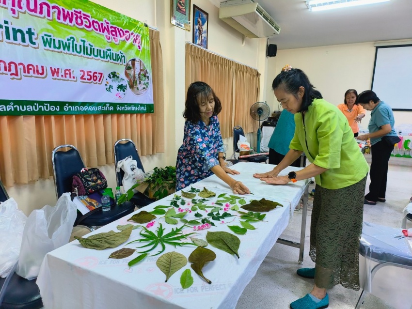 โครงการพัฒนาคุณภาพชีวิตผู้สูงอายุ ประจำปี พ.ศ.2567 กิจกรรม Eco print พิมพ์ใบไม้บนผืนผ้า