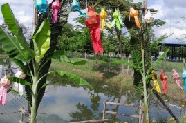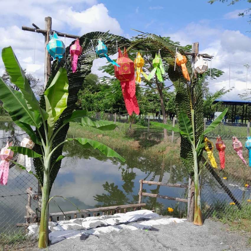จากนั้นร่วมกันลอยกระทง ณ สระน้ำ บริเวณลานกิจกรรมเทศบาลตำบลป่าป้อง เพื่อปล่อยโคมไฟ