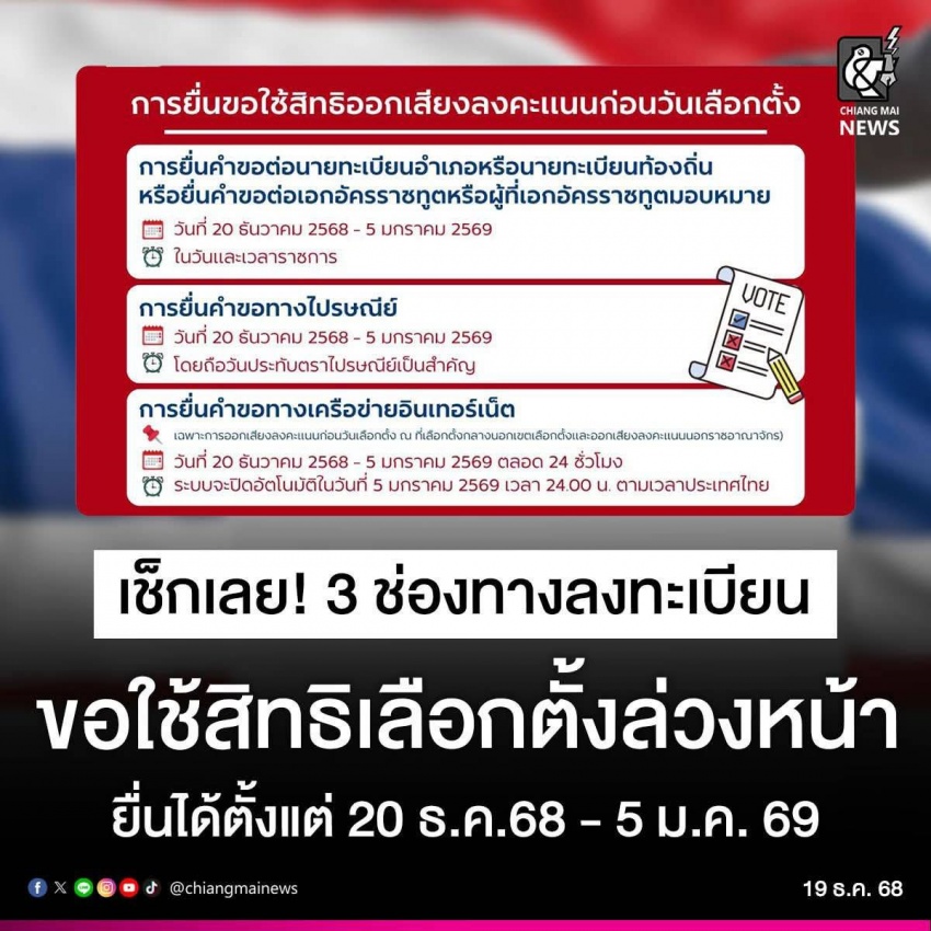 อย่าลืมยื่น ? กกต.กำหนดวันเลือกตั้งล่วงหน้าอย่างเป็นทางการ 1 ก.พ. 69 ใครจะใช้สิทธิเช็กวิธียื่นคำขอได้เลบ