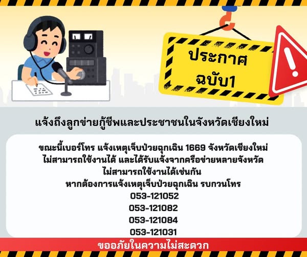 [ประชาสัมพันธ์ด่วน] แจ้งเบอร์สำรองเหตุฉุกเฉิน 1669 ขัดข้อง! ![]()