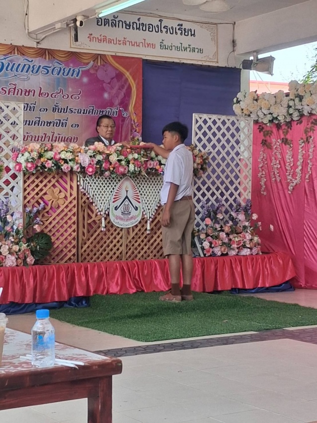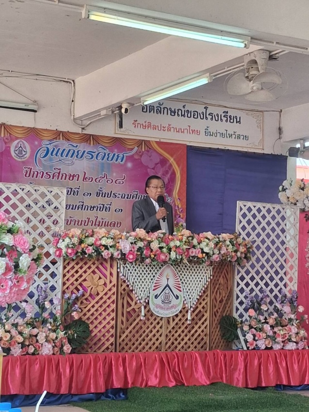 "ขอแสดงความยินดีกับลูก ๆ นักเรียนทุกคนที่สำเร็จการศึกษาในวันนี้ การเรียนจบในแต่ละระดับชั้น คือเครื่องพิสูจน์ถึงความรับผิดชอบและความตั้งใจ ขอให้ทุกคนนำความรู้และประสบการณ์ที่ได้รับจากรั้วโรงเรียนป่าไม้แดง ไปใช้เป็นรากฐานในการศึกษาต่อและการดำเนินชีวิต ให้เป็นผู้ที่มีคุณธรรม กตัญญูต่อบิดามารดา และเป็นกำลังสำคัญในการพัฒนาตำบลป่าป้องของเราสืบไป"