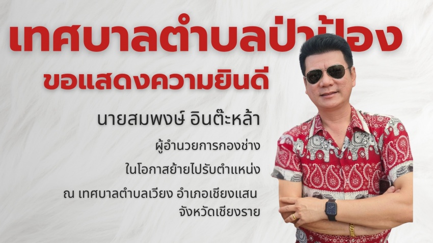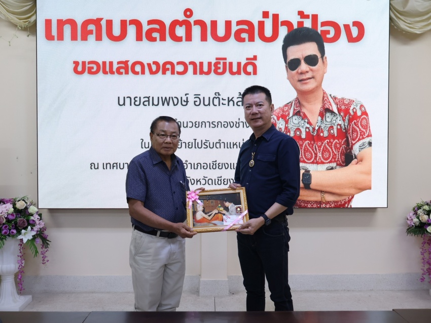 นายสมบูรณ์ ริญญา นายกเทศมนตรีตำบลป่าป้อง พร้อมด้วยคณะผู้บริหาร สมาชิกสภาเทศบาล หัวหน้าส่วนราชการ และพนักงานเทศบาล ร่วมแสดงความยินดีและมอบของที่ระลึกแทนความรักและความปรารถนาดี ให้แก่บุคลากรผู้ทรงคุณค่าทั้ง 2 ท่าน เนื่องในโอกาสวาระแห่งการเปลี่ยนแปลงเส้นทางชีวิตและการทำงาน